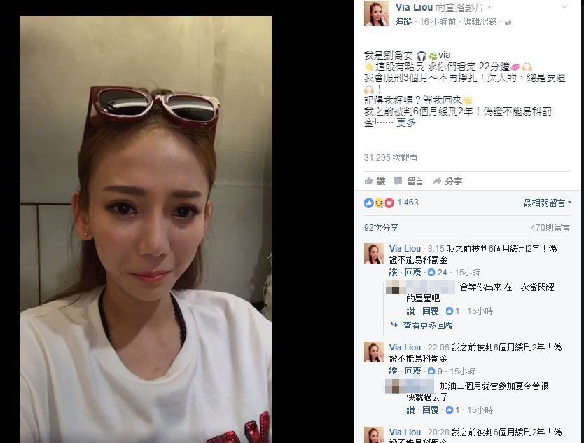 18日,劉喬安一開始是在自己的臉書開直播,但后來似乎是因為觀看她直播的網友人數不如預期,因此突然中斷,隨后她在另一個網絡平臺重開直播視訊,“我是劉喬安,想和大家說說話,支持我的,送我禮物吧,我要在入監服刑前,賺生活費”,此舉也被網友挨批太矯情,“原來就是想跟大家要禮物啊”、“嫌看的人少嗎?”