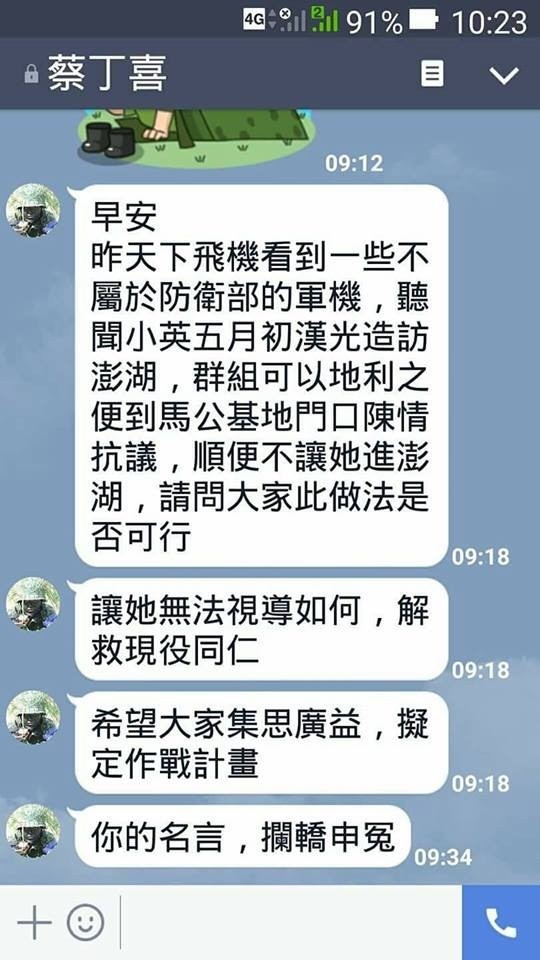 蔡丁喜發文泄漏蔡英文澎湖視察行程,遭質疑是否涉嫌泄密。(圖片來源:臺灣PTT論壇)