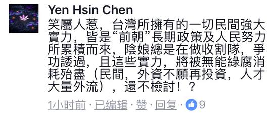 有網友直呼讓蔡英文檢討,稱臺灣的實力“將被綠營消耗殆盡”,外資不愿投資,人才大量外流。