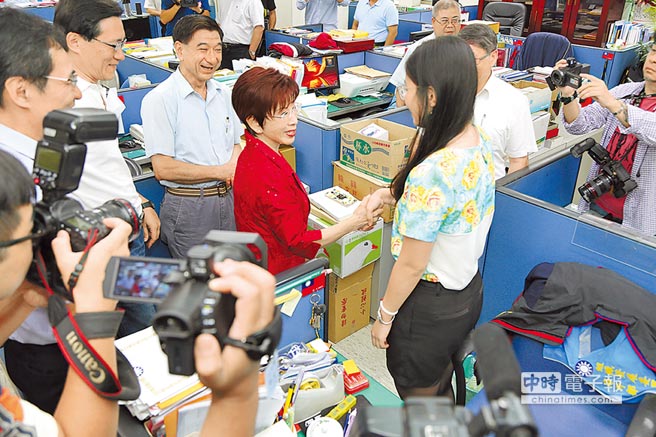 在副主席林政則、秘書長莫天虎的陪同下,洪秀柱逐一與黨工握手寒暄、合影留念,現場并播放“月亮代表我的心”;洪感性地說,她對黨有割舍不了的情感,也非常了解各部門不足之處,藉這機會提醒同仁,將黨務工作做得更好。