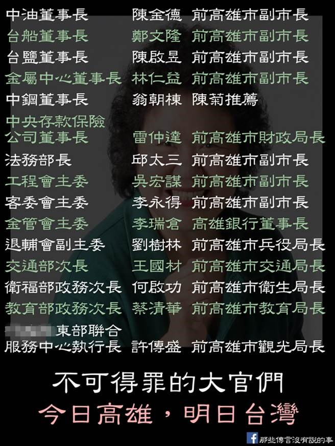 臺灣網(wǎng)友整理出的“不可得罪的大官們”。(圖取自“那些傳言沒有說的事”粉絲團(tuán))