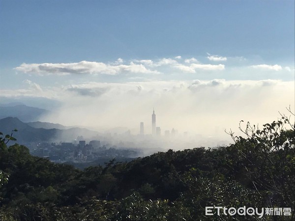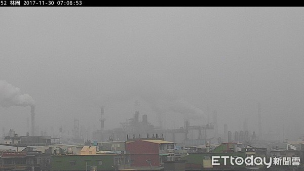 今秋最強空污,臺灣北部一片霧濛濛。(圖片來源:臺灣“東森新聞云”)