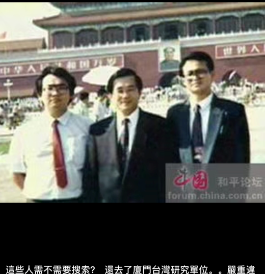 圖注:陳水扁(中)在天安門毛澤東像前留影,1991年7月23日至26日,陳水扁一連四天都在北京訪問。(圖片來源:臺灣網友王裕慶朋友圈)