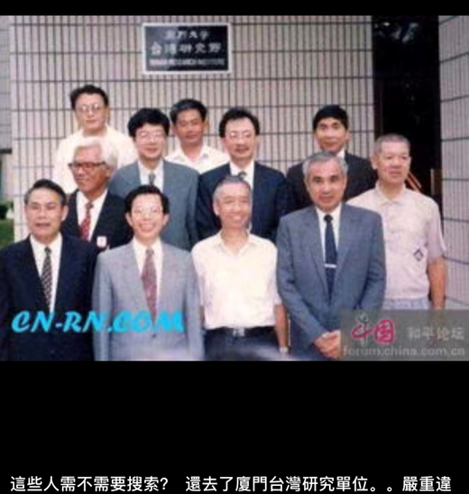 圖注:1993年,謝長廷(一排左二)率團赴大陸訪問,隨團的還有民進黨的姚嘉文(一排右一)、蔡同榮(三排右一)、柯建銘(三排右二)、李慶雄(二排左一)。圖為眾人訪問廈門大學臺研所時留影。(圖片來源:臺灣網友王裕慶朋友圈)