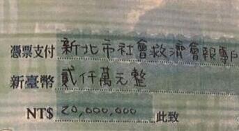 每年農歷年前,一位善心人士都以“無名氏”名義捐2千萬給新北市。(圖片來源:臺灣《聯合報》)