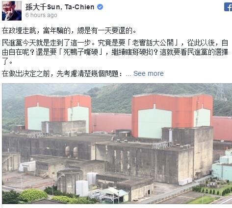 孫大千在今(7日)發文,為民進黨的限電危機提出合理的解套方案。他說,在政壇走跳,總有一天要還的,在做出決定之前,有三點必須考慮清楚: