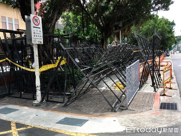 臺(tái)“立法院”正門(mén)堆滿層層拒馬。(圖片來(lái)源:臺(tái)灣“東森新聞云”)