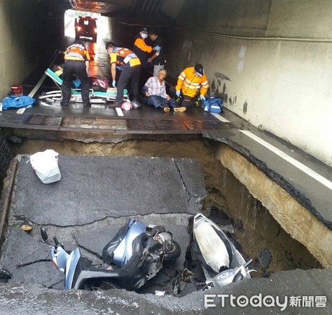 臺南連日大雨地下機車道塌陷 3騎士慘摔