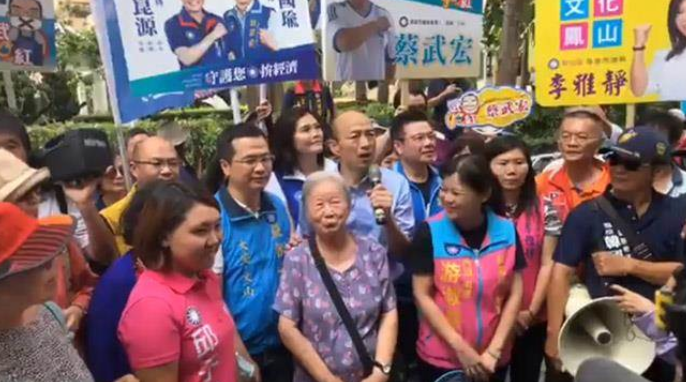 韓國瑜一番話 把高齡87歲阿嬤惹哭了!(圖片來源:臺灣《中時電子報》)