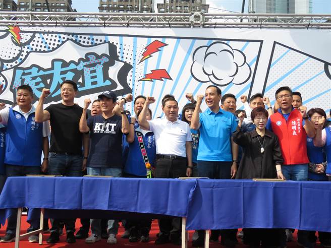 馬英九、周錫瑋、洪秀柱、朱立倫、侯友宜等先后按下手印,象征團結(jié)、一棒接一棒,現(xiàn)場“凍蒜(當(dāng)選)聲”此起彼落。