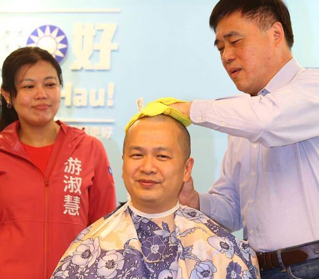 國民黨臺北市議員羅智強(中)又有驚人之舉,繼選前剃光頭照亮同黨同志游淑慧(左),他宣布四階段參選臺灣地區領導人,以行動改造國民黨。(圖片來源:臺灣《聯合報》)