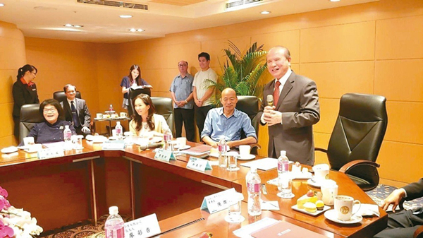 準高雄市長韓國瑜(右二)昨天拜會臺灣義聯(lián)集團董事長林義守(右一)。 (圖片來源:臺灣《聯(lián)合報》)