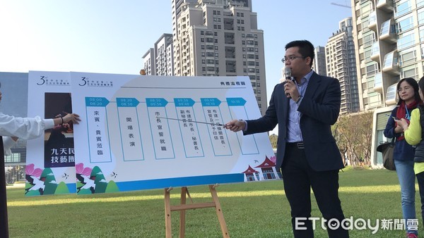 準臺中新聞局長吳皇升說明25日準臺中市長盧秀燕就任典禮流程。(圖片來源:臺灣“東森新聞云”)