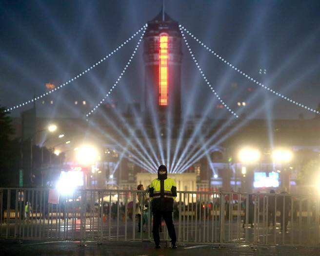 由于陳抗區距離蔡辦遙遠,兩人行為并未干擾典禮進行,當升旗典禮結束后不久,兩人也隨即離去。而蔡英文、其副手陳建仁和夫人羅鳳蘋,則在蔡辦秘書長陳菊與臺北市長柯文哲等人陪同下,于上午6時20分步出領導人辦公室,抵達典禮現場。“行政院長”賴清德、“立法院長”蘇嘉全都出席升旗典禮。蔡隨后步下舞臺與賴清德等人握手致意。
