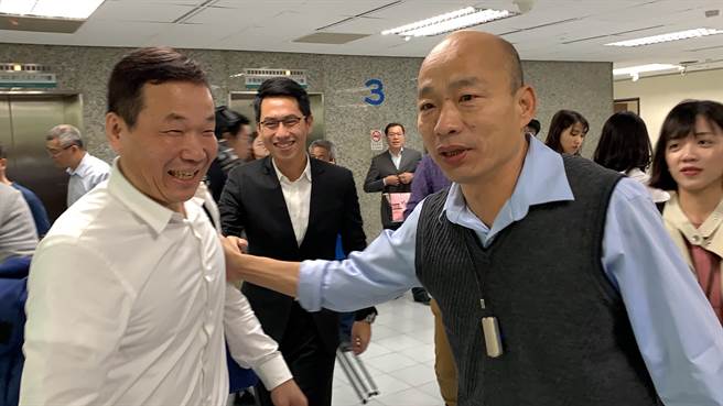 臺北市議員鍾小平(左)今拜會韓國瑜(右),要為“選民服務(wù)”討紅包及春聯(lián)。(圖片來源:臺灣“中時電子報”)