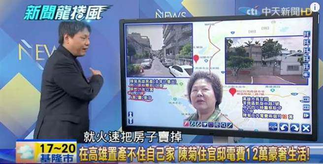 謝寒冰在政論節(jié)目上評(píng)論,“監(jiān)委”發(fā)現(xiàn)高雄市長(zhǎng)陳菊官邸電費(fèi)驚人,2009年的六七月兩個(gè)月電費(fèi)高達(dá)12萬(wàn)元。(圖片取自臺(tái)媒)