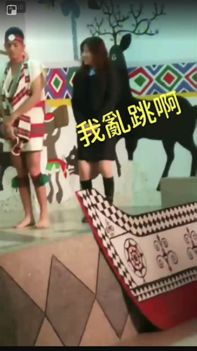 醉酒女子亂入基隆市少數民族舞蹈團的表演,還直呼“我亂跳!”。(圖片取自臺媒)