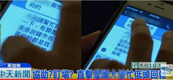 臺媒直擊畫面曝光,臺當局“駐新加坡代表”忙著回復來自臺灣的訓令。(圖片來源:臺灣“中時電子報”)