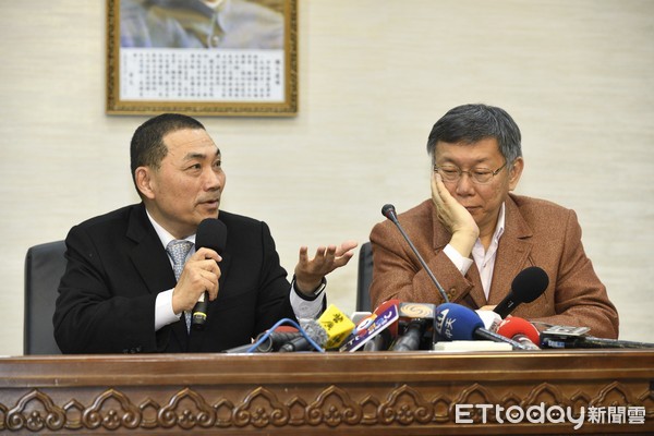 雙北市長柯文哲侯友宜會面,會后接受媒體聯(lián)訪。(圖片來源:臺灣“東森新聞云”)