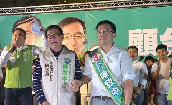 陳水扁曾為兒子陳致中站臺(tái)。(圖片來(lái)源:臺(tái)灣“中時(shí)電子報(bào)”)