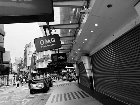 桃園市綠黨議員王浩宇發出這張照片,并稱這是周末下午的新崛江商圈,整排店面都空的。(圖片取自臺媒)