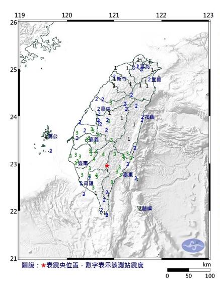 中國臺灣網4月3日訊 據臺灣“中央社”報道,根據臺“中央氣象局”最新信息,島內3日9時52分發生5.6級地震,地震深度10.0公里,震中位于臺東縣政府西偏北方37.5公里(位于臺東縣延平鄉),最大震度高雄市、屏東縣、嘉義縣4級。(中國臺灣網 李寧)