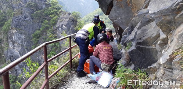 中橫綠水步道1男1女遭落石擊傷送醫。(圖片來源:臺灣“東森新聞云”)