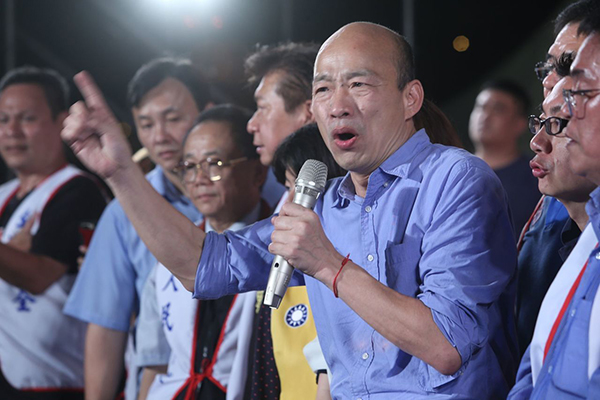 韓國瑜27日晚在高雄鳳山參加“挺韓誓師大會”。(圖片來源:臺灣《聯合報》)
