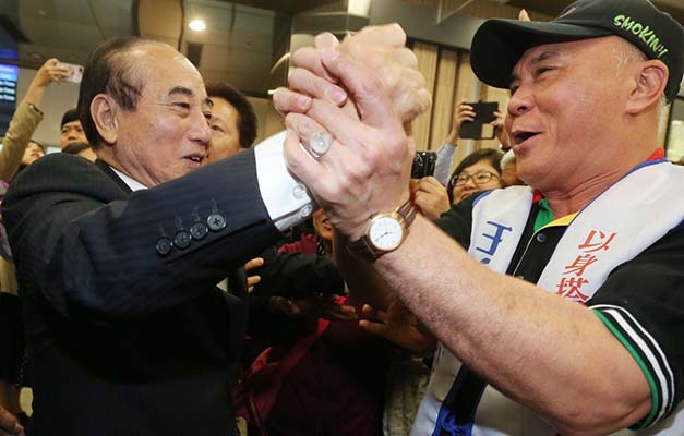 臺前“立法院長”王金平(左)率團前往廈門等地進行“祭祖尋根之旅”,晚上搭機返回臺北,在機場時重申表示,“臺獨”是不可行的。(圖片來源:臺灣《聯合報》)