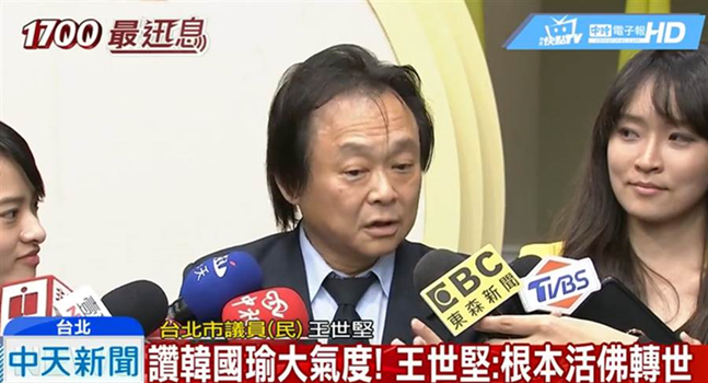 臺北市議員王世堅大贊韓是“活佛轉世”(圖片來源:臺灣“中時電子報”)