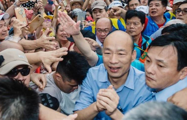 韓國瑜1日出席凱道挺韓大會師,現(xiàn)場涌入數(shù)十萬人,因熱情的韓粉簇?fù)恚岉n進場就走了10多分鐘。(圖片來源;臺灣“中時電子報”)