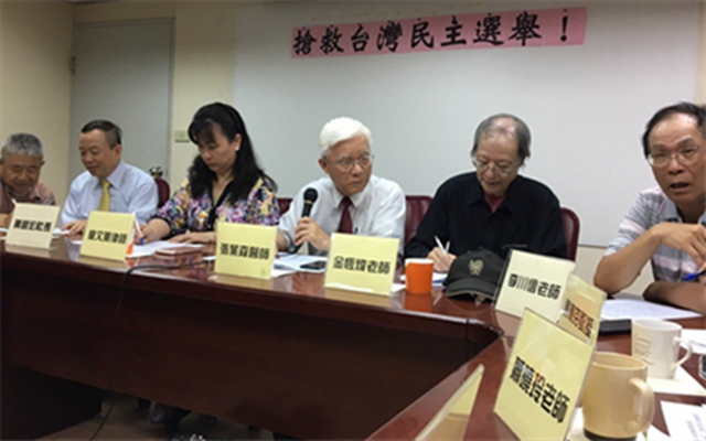 多個“本地社團”領(lǐng)袖組成的“民進(jìn)黨初選觀察團”今(5日)早舉行“搶救臺灣民主選舉”記者會(圖片來源:臺灣《聯(lián)合報》)