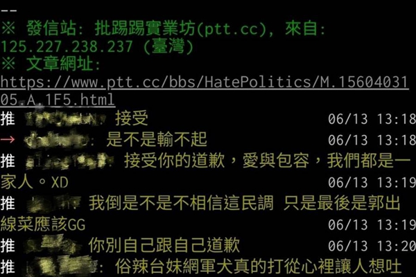 PTT網友發文、留言。(圖片來源:臺灣“中時電子報”)