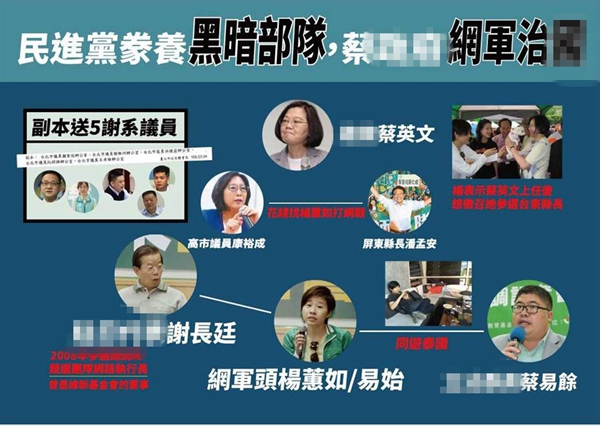 國民黨列出網軍跟民進黨的關系網絡。(圖片取自臺媒)
