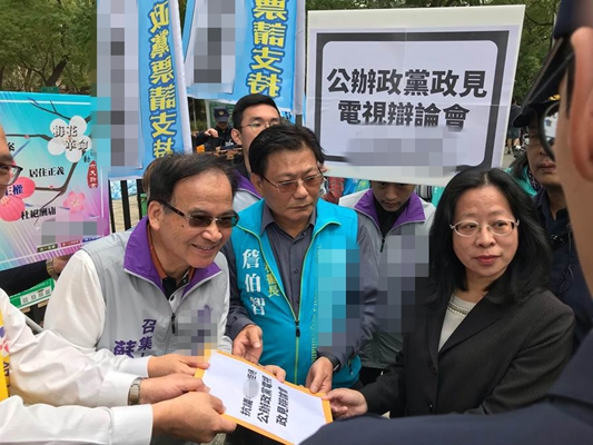 多政黨抗議“中選會”拒辦電視辯論。(圖片取自臺媒)