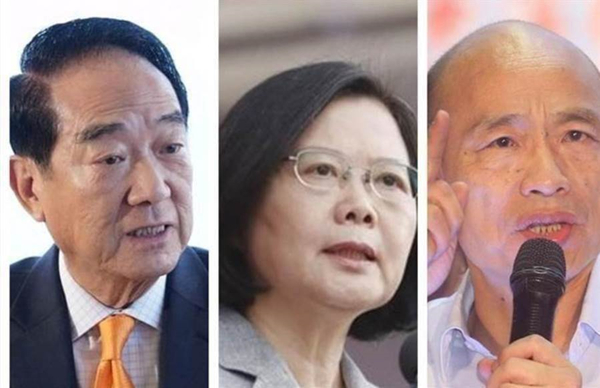 宋楚瑜(左)、蔡英文(中)和韓國瑜(右)。(圖片來源:臺灣“中時電子報”)