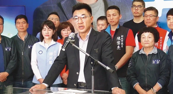 國民黨主席江啟臣(中)。(圖片來源:臺灣《聯(lián)合報》)