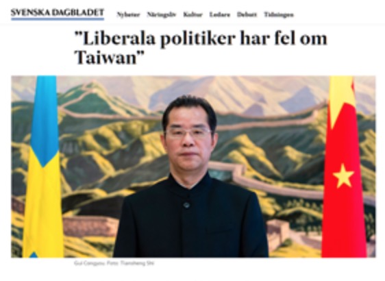 駐瑞典大使桂從友在《瑞典日報》發表題為《少數瑞典政客不應就涉臺問題發表錯誤言論》的署名文章。(來源:外交部官網截圖)