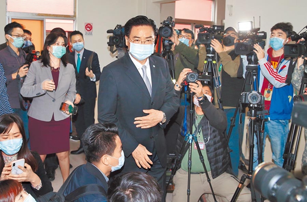 民進黨當局外事主管部門負責人吳釗燮(中)。(圖片來源:臺灣“中時電子報”)