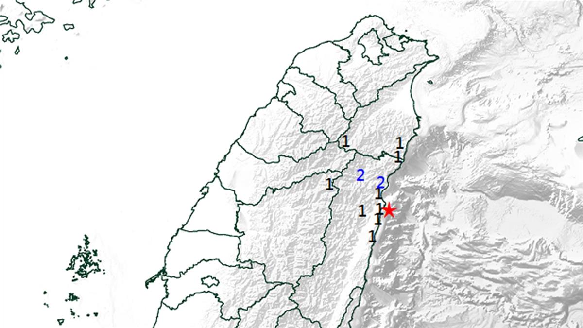 臺灣花蓮發生規模3.9地震 最大震度2級