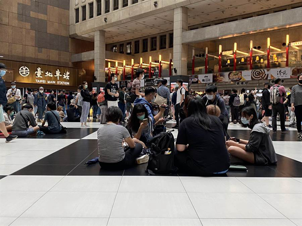 臺(tái)網(wǎng)友發(fā)起“坐爆臺(tái)北車站”活動(dòng)。(圖片來源:臺(tái)灣“中時(shí)電子報(bào)”)