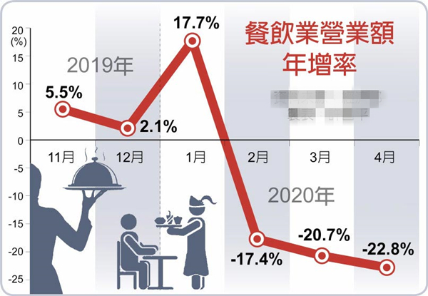 臺灣4月餐飲業(yè)營業(yè)額創(chuàng)史上最大跌幅 放無薪假人數(shù)持續(xù)飆高
