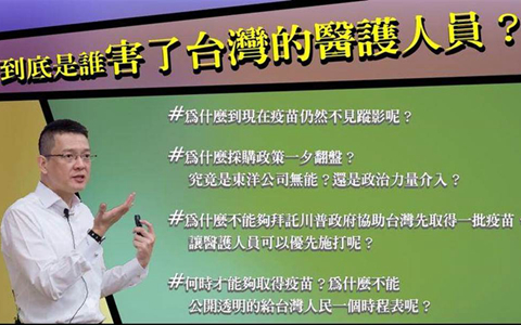 第二,去年圣誕節前夕,臺灣就可以借由臺灣東洋藥品公司取得第一批200萬劑疫苗,供醫護人員施打,為什么采購政策一夕翻盤?究竟是東洋公司無能?還是政治力量介入?