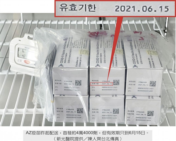 臺AZ疫苗有效期剩不到3個月。(圖片來源:臺灣“中時新聞網”)