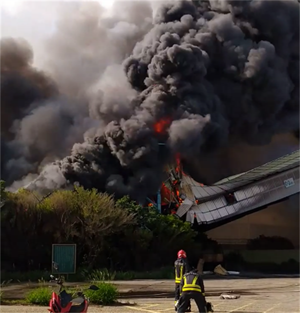 臺中火力發(fā)電廠疑似輸送帶起火 消防隊(duì)搶救中。(圖片來自臺媒)
