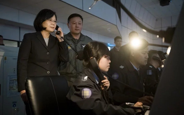 圖為臺(tái)灣地區(qū)領(lǐng)導(dǎo)人蔡英文視察臺(tái)空軍作戰(zhàn)指揮部。(圖片取自臺(tái)媒)