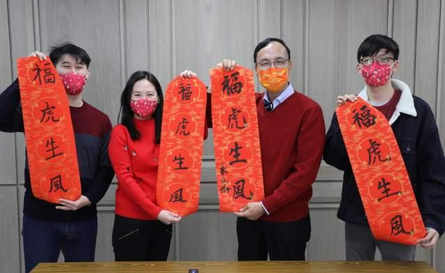 中國臺灣網(wǎng)2月1日訊 據(jù)臺灣“中時新聞網(wǎng)”報道,為迎接農歷虎年到來,中國國民黨主席朱立倫與三位青年朋友一同揮毫開筆,寫下“福虎生風”春聯(lián),向大家拜年。除祝福新的一年,各行各業(yè)欣欣向榮、臺灣鄉(xiāng)親虎年如意,他也期望全體臺灣民眾同心協(xié)力,盡快脫離病毒肆虐,拋開疫情陰霾,成為飛奔躍升的一年。