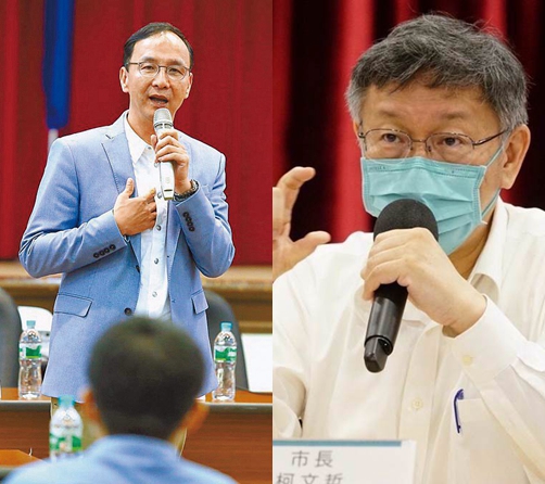 朱立倫(左)、柯文哲(右)。(合成圖,圖片來源:臺灣“中時新聞網”)
