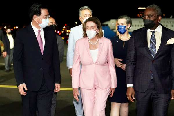 美國眾議院議長佩洛西(中)2日晚抵臺竄訪。
