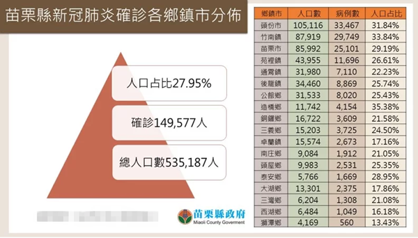 苗栗縣今天新增1155例,今年迄今累計(jì)本地病例149577人,人口占比確診率達(dá)27.95%。(圖片取自臺(tái)媒)